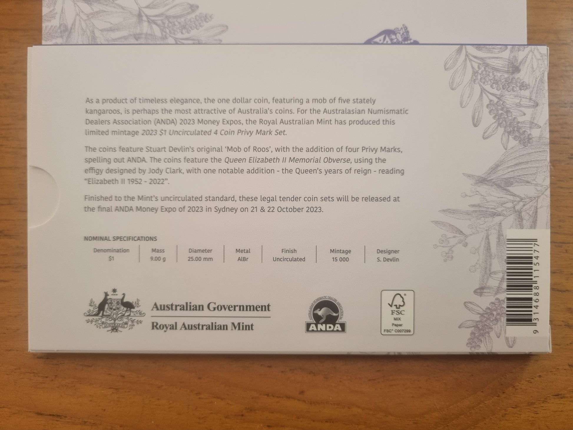 2023 ANDA Sydney Mint Set 4 x $1 Privy Set