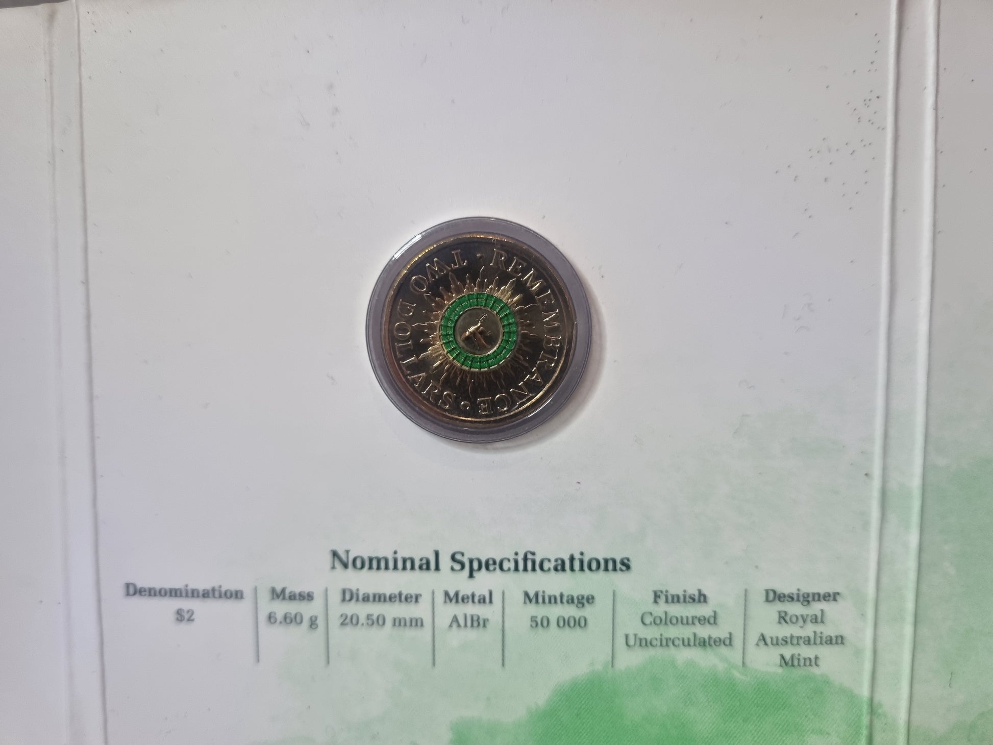 The 2014 Green Dove Remembrance $2 coin represents a significant numismatic release from the Royal Australian Mint. This trifold presentation features the iconic green dove motif, symbolising peace and remembrance. Struck in pristine condition and housed in its original protective casing, this coin captures an important moment in Australian commemorative coinage. The 2014 date marks a key year for collectors seeking complete series runs. Ideal for both seasoned numismatists and those beginning their Australian coin collection, this piece combines historical significance with collectible appeal.